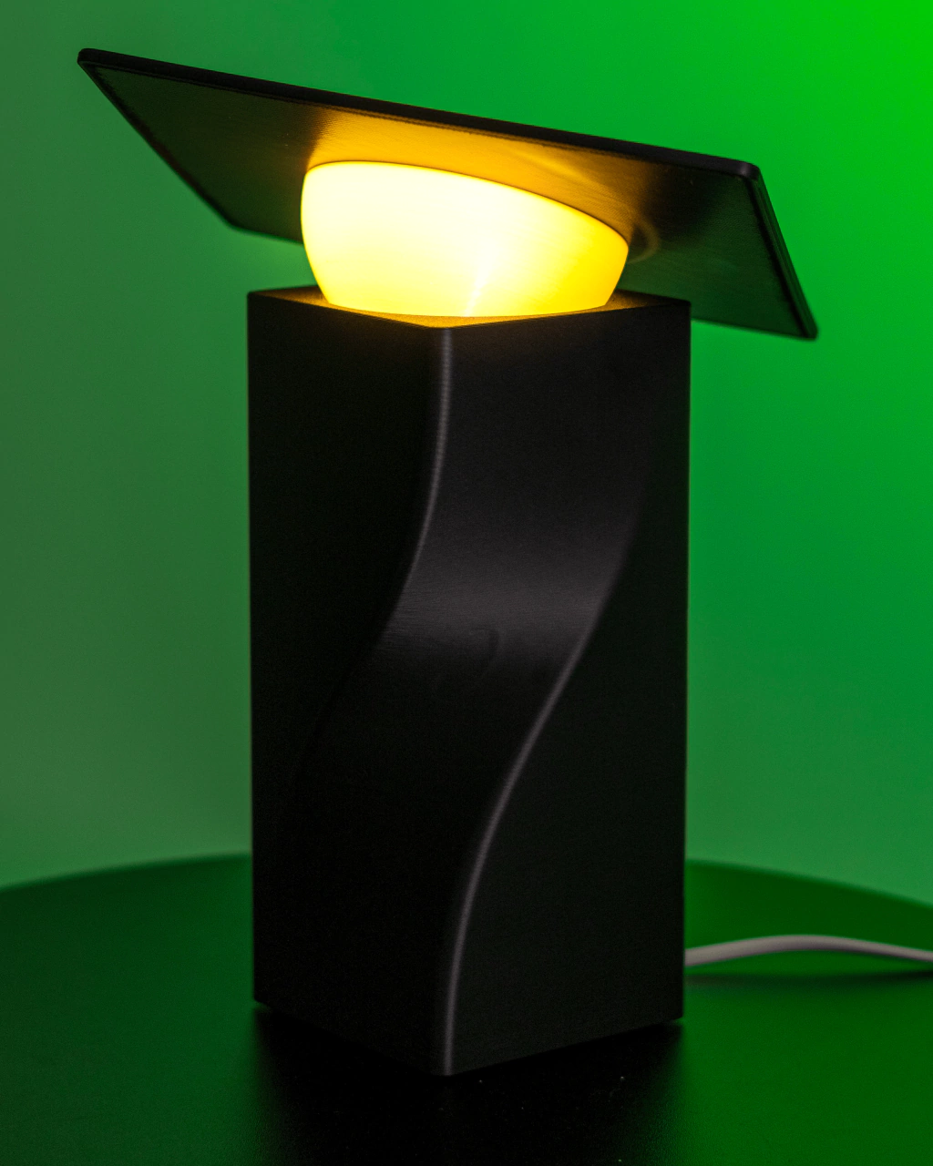 Seu design geométrico inovador, impresso em 3D com PLA sustentável, equilibra modernidade e funcionalidade. O acabamento preto fosco adiciona um toque de sofisticação atemporal, enquanto sua iluminação difusa proporciona uma experiência visual única – perfeita para criar momentos de conforto e inspiração.
