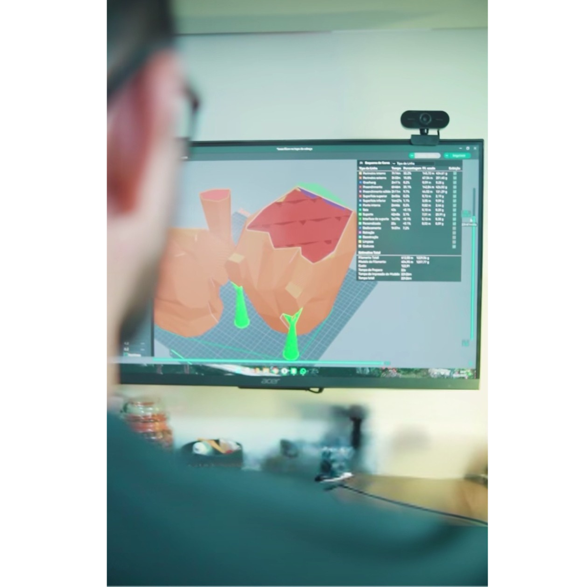 4. Impressão 3D e acabamento: realizamos a produção com materiais sustentáveis e acabamento refinado.
